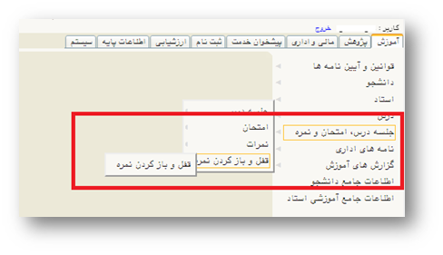 بنابراین برای قفل آموزش همه دروس نمایش داده شده دارای نمره اعم ازاینکه قفل استاد داشته باشند یا نه از ۳ و برای قفل تنها نمرات یک گروه درسی از ۵ استفاده می شود.